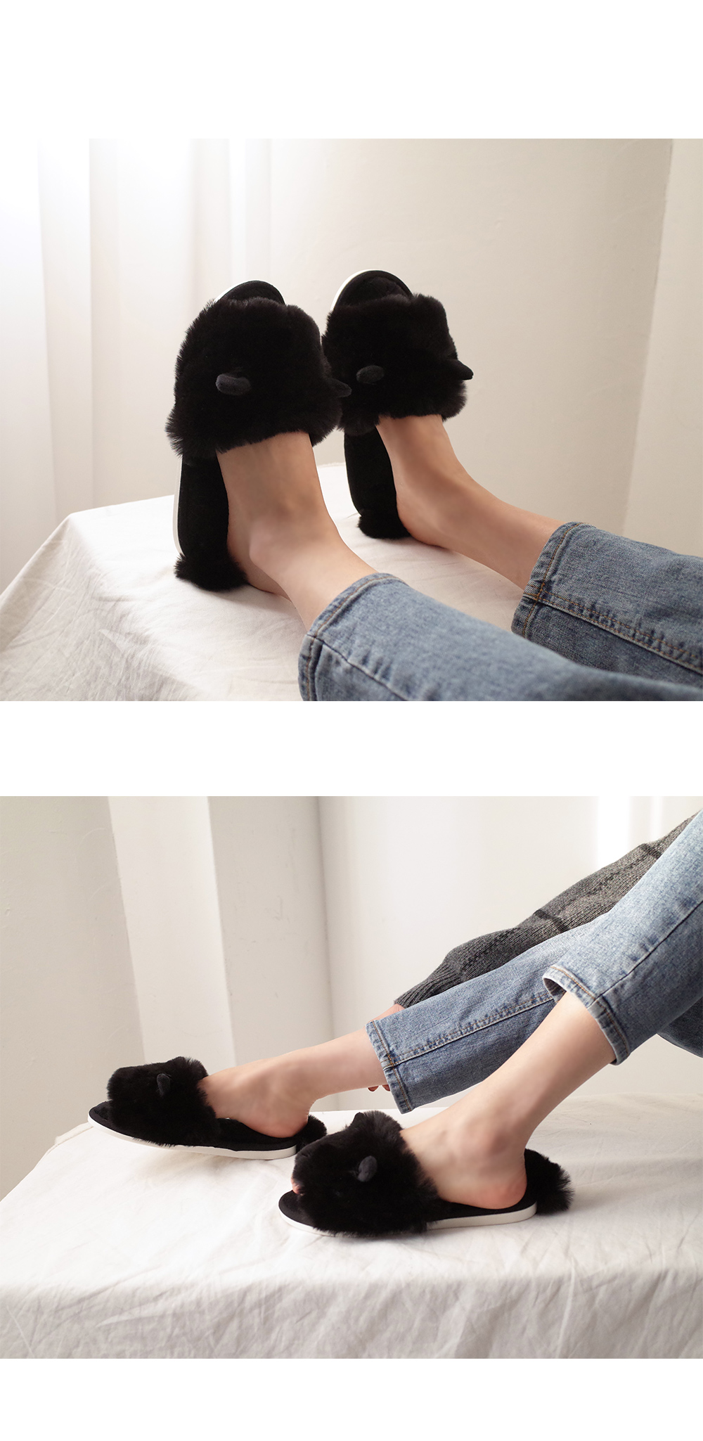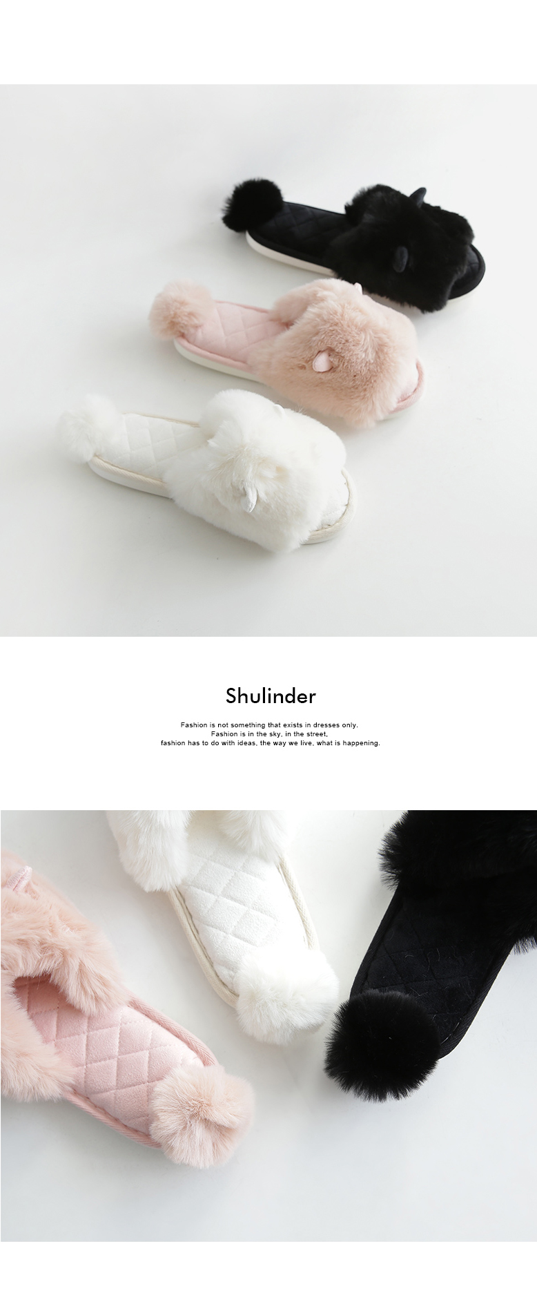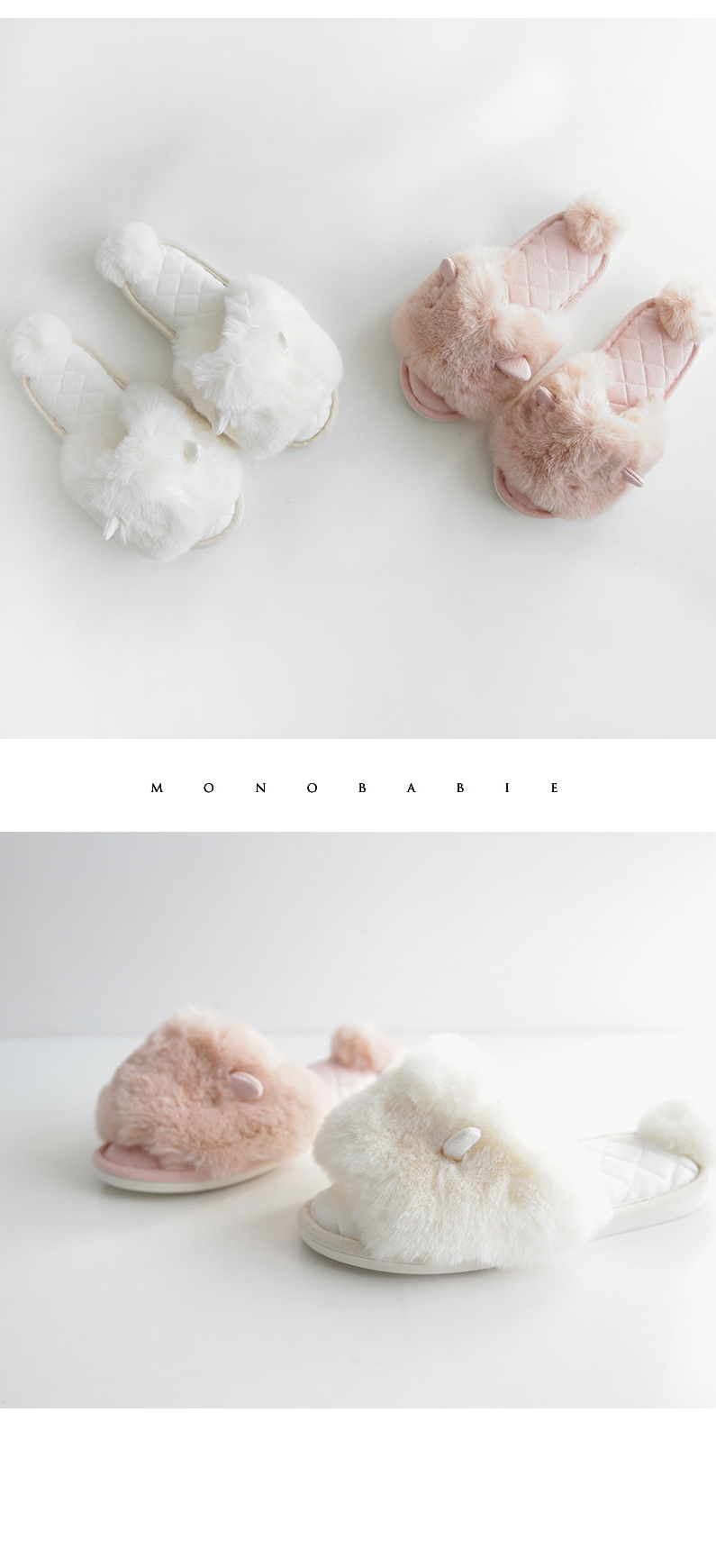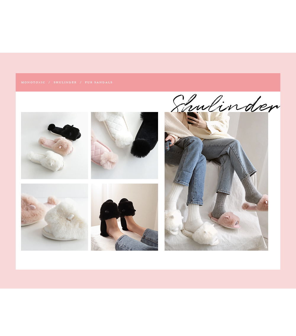 실내에서 착화되는 디자인으로 바닥 저면에는 다이아몬드 쿠션닝을 더해주었으며 발등과 백라인에는 풍성한 퍼로 제작되었습니다.