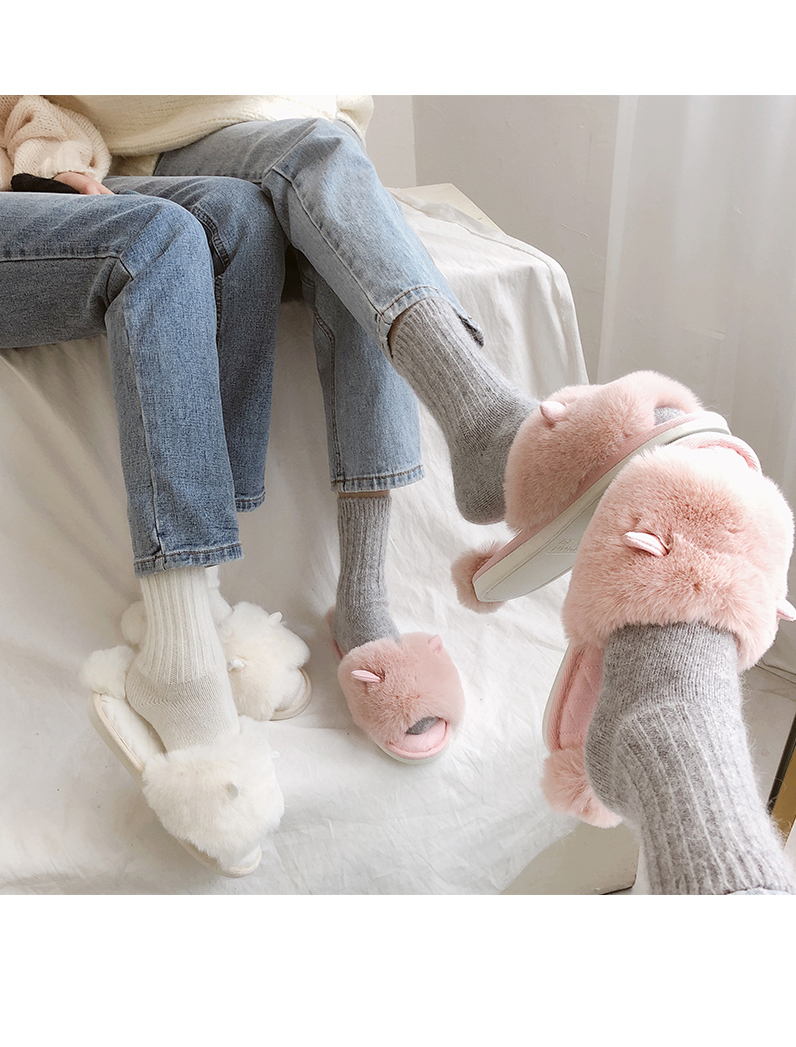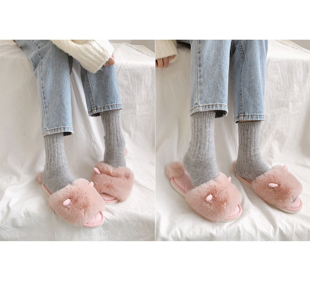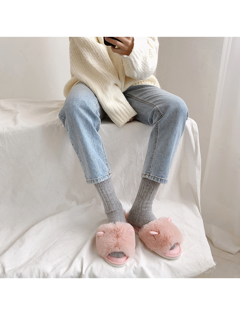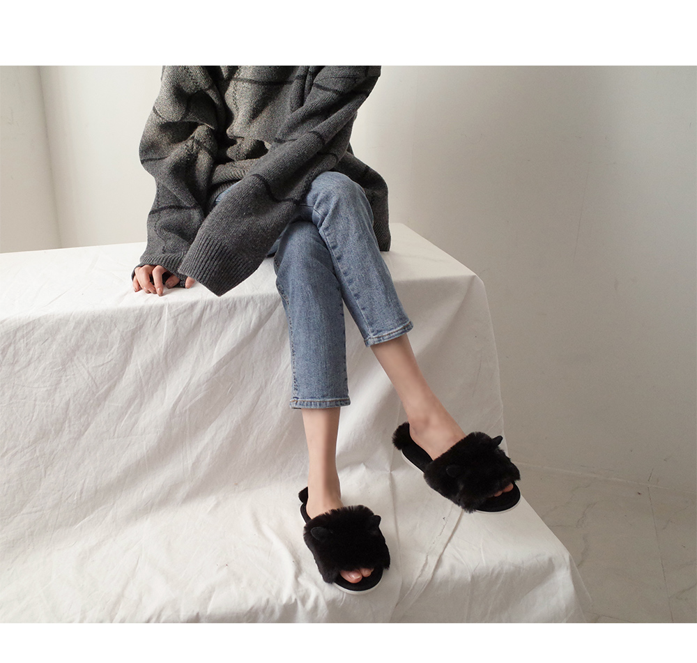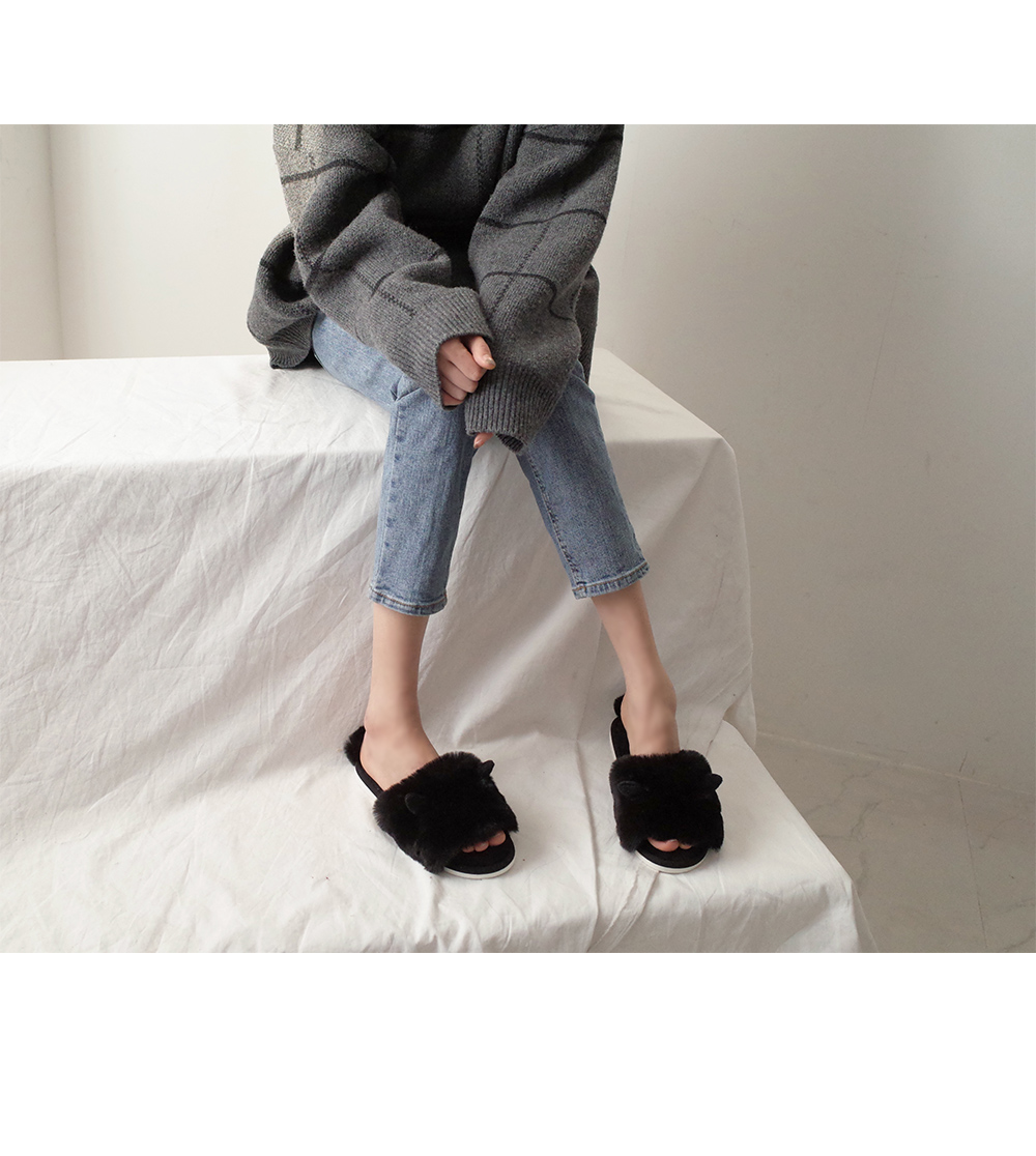 실내에서 착화되는 디자인으로 바닥 저면에는 다이아몬드 쿠션닝을 더해주었으며 발등과 백라인에는 풍성한 퍼로 제작되었습니다.
