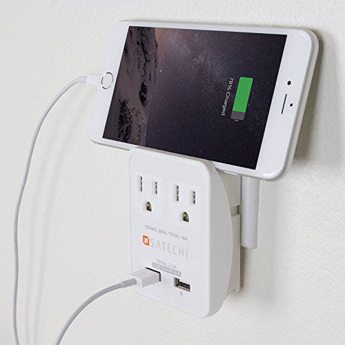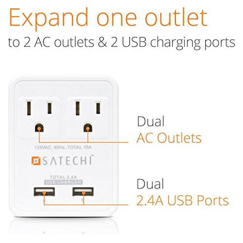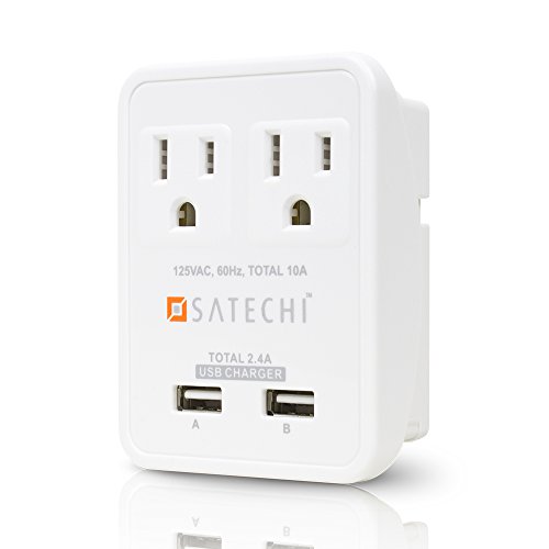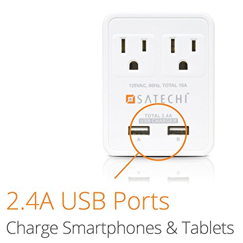 Satechi 2 AC Outlet Compact Travel Charger Power Adapter 1250W 100-240V Dual USB ports for 5V 2.4A output for iPhone 6 / 6 Plus / 5S / 5, iPad Air / Mini, Galaxy Note 4 / Note 3 / S5 / S4 / and more