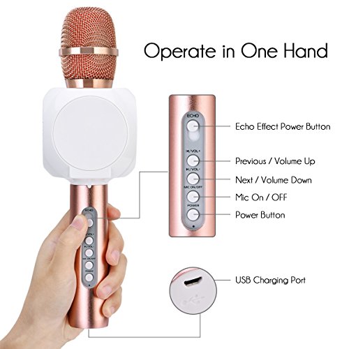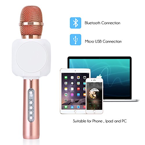 WIRELESS BLUETOOTH CONNECTION Compatible with all the smart devices through wireless Bluetooth , get away from the stereotype cable connection problem, you can sing freely as you want.