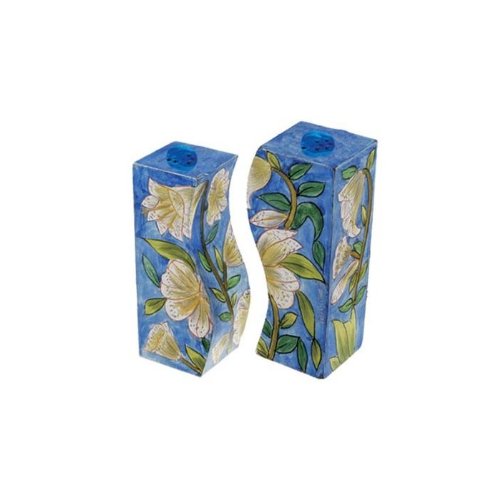 - This Yair Emanuel salt and pepper shaker features a painting of lily flowers. This set is hand painted and lacquered.