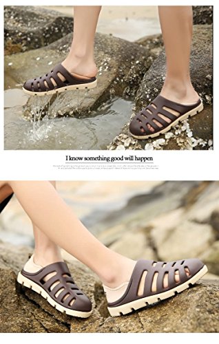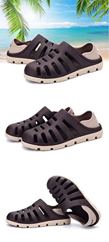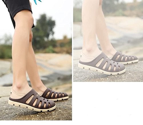 Binding : Apparel Product Description WAZZIT Brand Men's Half Slippery Breathable Beach Crocs.Your best choice for summer. Vamp:plastic.Sole:plastic. Color:black,grey,borland,brown. Size:6.5D(M) US, Foot length£º240mm. Size:7D(M) US, Foot length:245mm. Size:7.5D(M) US, Foot length:250mm. Size:8D(M) US, Foot length:255mm. Size:8.5D(M) US, Foot length£º260mm. Size:9D(M) US, Foot length:265mm. Size:9.5D(M)US, Foot length:270mm. Size:10D(M) US, Foot length:275mm. It is cool and enjoyable to walk on beach in summer. Suitable for various occasions,including sandy beach,entertainment activities and leisure life. Fashionable and charming. Outstanding feature:soft and comfortable vamp,environmental and harmless material,breathable inside part,anti-skidding sole. 0