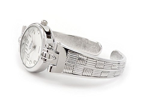 -. Binding : Watch -. Brand : FTW -. Department : Womens -. EAN : 0642345993489 -. Feature : Stainless Steel Back / Japan Quartz Movement / Band Width: About 0.4 inch (11 mm) / Case Size is about 0.9 inch (25 mm) / Open to fit all wrists from 6 to 7 inches -. Label : Eikon -. Manufacturer : Eikon -. Model : SLDECBC91 -. MPN : STC -. PartNumber : STC -. ProductGroup : Watch -. ProductTypeName : WATCH -. Publisher : Eikon -. Studio : Eikon -. Title : Silver Metal Decorated Band Women's Bangle Cuff Watch -. UPC : 642345993489