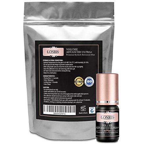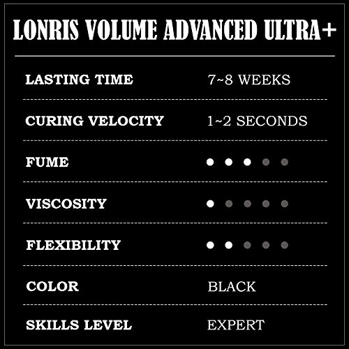 ★LONG LASTING AND EXTRA STRONG: Lonris Volume advanced Ultra+ adhesive is premium quality glue and extremely strong with the longest retention period on the market of semi-permanent eyelash extension glue. Our glue lasts up to 7-8 weeks.