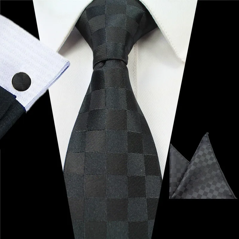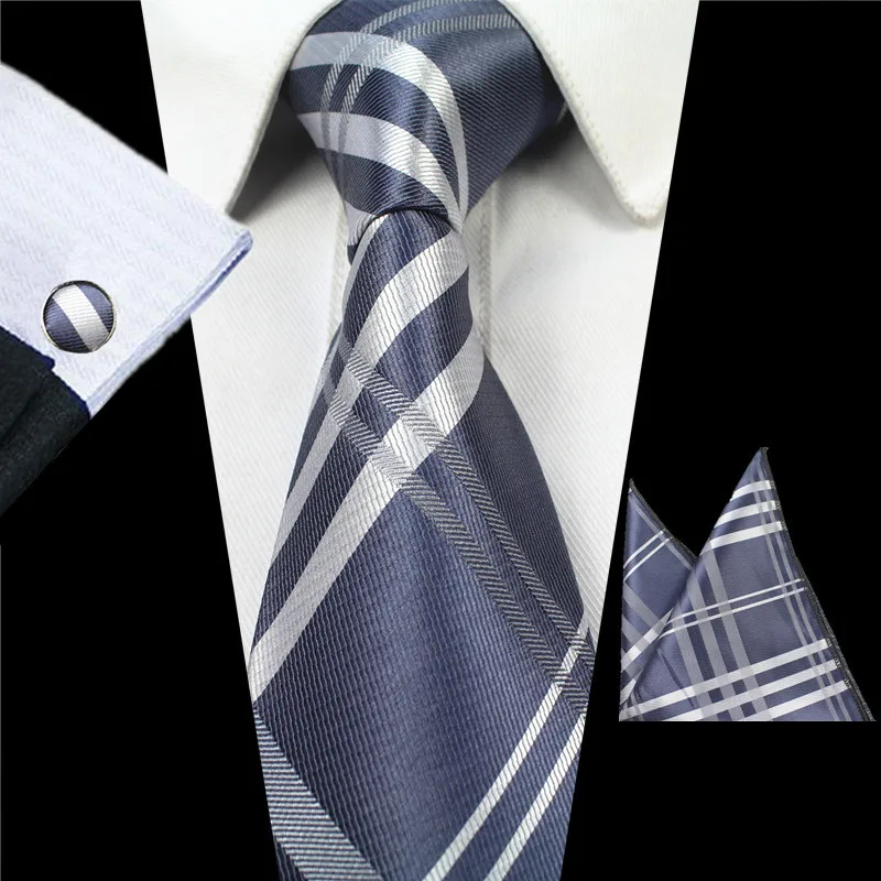 Pattern Type: Plaid Tie Set Including: Tie & Hanky & Cufflinks