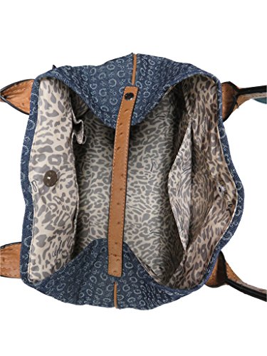 Authentic Guess Denim Signature with Ostrich Embossed Faux-leather Trim