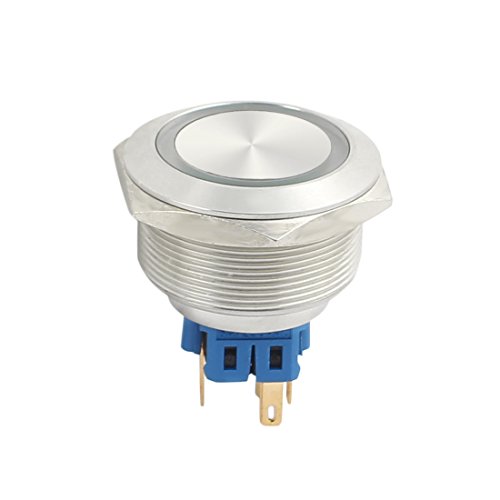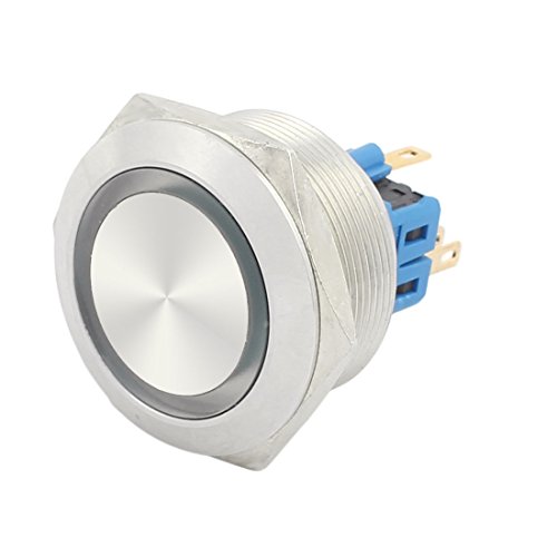 uxcell UL AC 5A 250V 30mm 1.18" Mounting Thread Flat Round 1NO 1NC DPST Momentary Stainless Steel Metal Waterproof Push Button Switch with Green Light