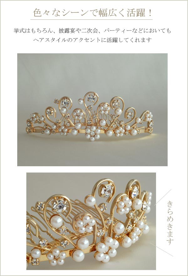 ウェディング(ブライダル)や2次会、パーティーなど色々なシーンにお使いいただけるティアラです。