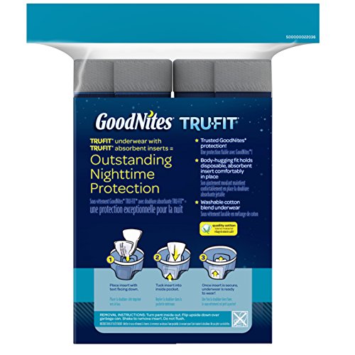 - Feature : GoodNites TRU-FIT Underwear for Boys Starter Pack comes with 2 underwear and 5 disposable inserts. / TRU-FIT bedwetting underwear is available in S-M for 38-65 lbs boys, and L-XL for 60-100 lbs boys. / Real underwear with a cotton-blend that is a washable, foldable bed wetting underwear with no natural rubber latex. / TRU-FIT nighttime underwear has a body-hugging fit that holds disposable, absorbent insert comfortably in place. / Bring adventure to bedtime and get your son a free digital story book of Marvel Iron Man when you purchase GoodNites bedtime solutions on Amazon.