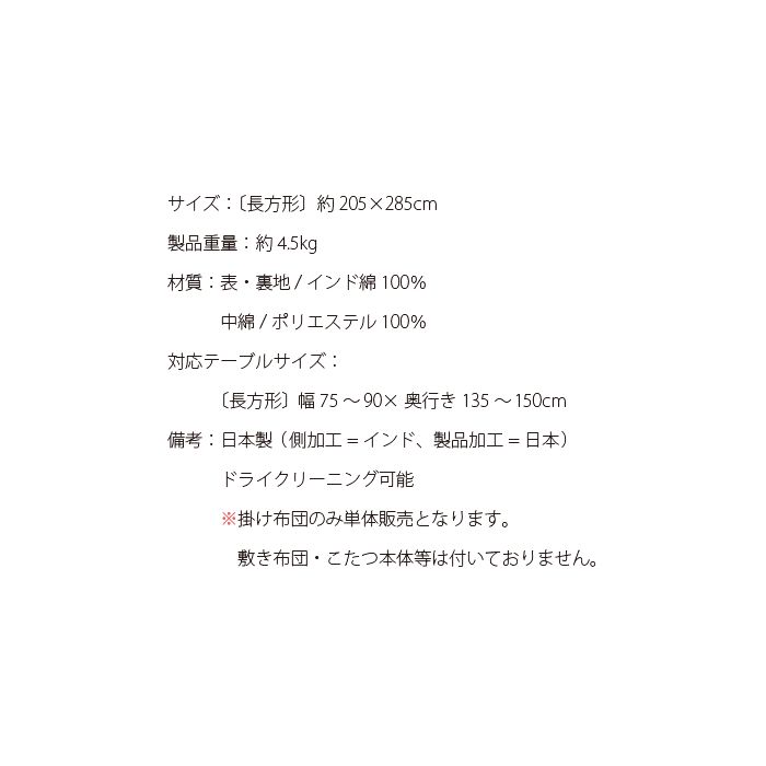 톱 > 난로 테이블난로 이불 > 인도면 난로후 이불Loca(러 카) 직사각형:205×285cm
