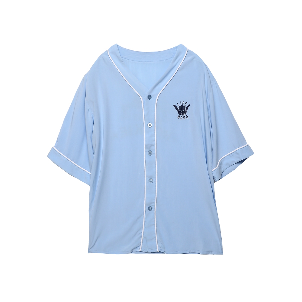 야구복 핏의 패턴과 가슴, 등판의 스포티한 원포인트가 있는 제품 입니다.