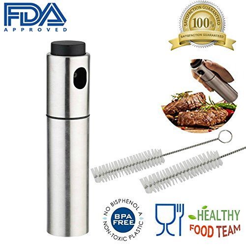 Features -High-quality stainless steel spray bottle, BPA free, durable, hygienic -Improved nozzle design, more convenient to use, avoid oil drop or overflow -Use the sprayer bottle, can control the amount of oil in food and enjoy healthy food -Reusable oil spray, more economical and environmental -Easy to clean, just unscrew the lid and rinse with water -Portable design, convenient to use anywhere -2 extra cleaning brush is included for thorough cleaning of residue inside sprayer -Stainless steel spray bottle is perfect for all kinds of liquid non corrosive in cooking barbecue and skin scare