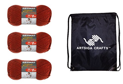 - Bundle includes 3-Pack Bernat Softee Chunky Yarn Redwood 161128-28522 with 1 Artsiga Crafts Project Bag