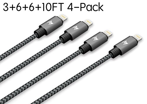 -. Title : AYIPE iPhone Charger Lighting Cable 4-Pack 3.3+6.6+6.6+10 Feet (1+2+2+3 Meters) Nylon Braided 8pin Charging cord (GrayBlack) for iPhone 8/7/7 Plus 6/6S /6Plus 5/5S/5C/SE/iPad,iPod Nano 7 and More