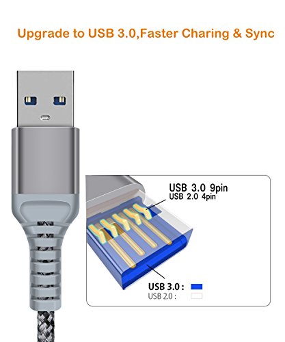 - Nylon Braided USB Type C Cable: The usb c to usb a cable has a durable nylon braided design with premium metallic housing which makes it easily survive everyday usage and gives it a more stylish and elegant appearance ,With a tested 4000+ bend lifespan, Premium nylon braided type c cable will more durability and cable tangle-free.