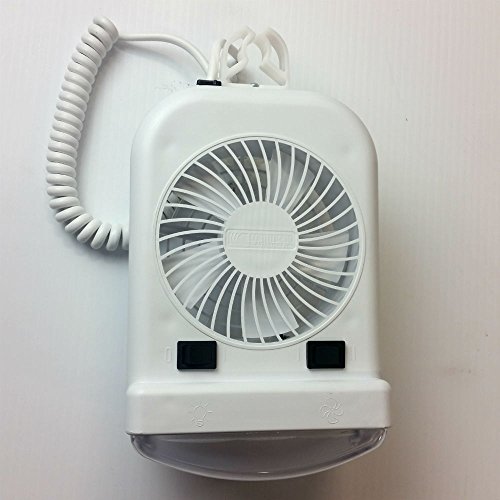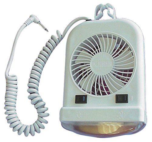 Command Fan/Bunk Light Combo. High intensity reading light combined with a two-speed fan. Unique two directional mounting system accepts 3/4 inch or 1in tent support. Includes an 8ft coil cord that will plug into a 1/4 inch jack (not included). Unit has a long life thermally protected motor. 12-V DC, 1.3 amps max. CSA certified for the US and Canada. Bulb #912. 10-1/8 inch x 5-1/2 inch x 4-1/4 inch.Feature
