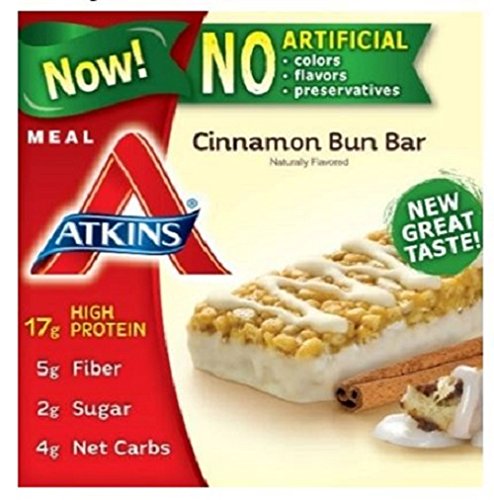 -. Binding : Health and Beauty -. Brand : Atkins -. EAN : 0637480055055 -. Feature : Crispy bar with a sweet cinnamon roll taste, combined with roasted almonds, sunflower seeds and whole grain rolled oats / Only 2g sugar and 4g net carbs per serving / Excellent source of protein & fiber / No added sugar. Great for a low carb lifestyle! / Essential vitamins and minerals -. Label : Atkins -. Manufacturer : Atkins -. MPN : 637480055055 -. PackageQuantity : 3 -. PartNumber : 637480055055 -. ProductGroup : Health and Beauty -. ProductTypeName : HEALTH_PERSONAL_CARE -. Publisher : Atkins -. Size : 3 -. Studio : Atkins -. Title : Atkins Advantage Cinnamon Bun Bar 5x1.7oz (Pack of 3) -. UPC : 637480055055