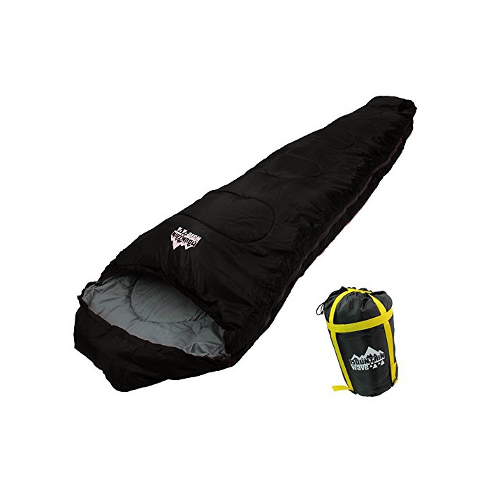 MOUNTAIN WAVE 침낭 고급 《슈라후》 -15℃ 《마미》형 등산동용 아웃도어 차 안박 방재용 재해시 보온성UP 경량 통째로 세탁 (검정)
