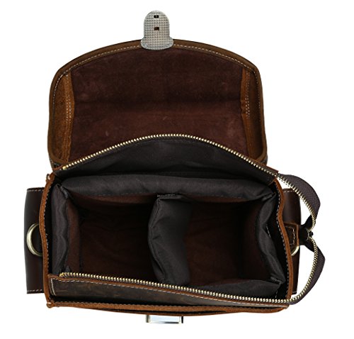 -. Feature : 【サイズ】横24cm×縦22cm×マチ14cm、ショルダーベルト長さ:73cm~137cm*幅3.5cm(調節可能 、着脱可) / 【重量】約1.1kg  【素材】本革(天然牛革) 【色】ダークブラウン色  【状態】新品 / 【仕様】メインファスナーポケット×1、内部:着脱可能一眼レフ守る仕切り付クッションあり、 背面:ファスナーポケット×1、両側:小物ポケット×2 / 【贅沢な素材】厳選された厚手天然牛革素材を採用、独特なオイル加工を施し、天然素材の自然風 合い保つビンテージ感レザーに生まれ変わりました。素材の特性上、バッグが使い込むほど綺麗な オイル光沢が出ます。外面は厚手牛革素材、内部は柔らかいクッション、この完璧なコンビにお大事なカメラをちゃんと守ります。 / 【実用性】メイン収納室がマチタップリで、内部がお大事な一眼レフを守るクッションがあり ます。両側や背面も小物ポケット付き、旅行撮影などにとても便利なミニバッグです。クッション が着脱可能のため、クッションを取り出して普段のミニショルダーバッグとしてご利用もよろしい です。ベルトは着脱式、手持ちや斜めがけも対応、機能性抜群!一眼レフも対応、旅行やアウトド アに使える!