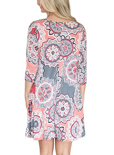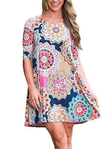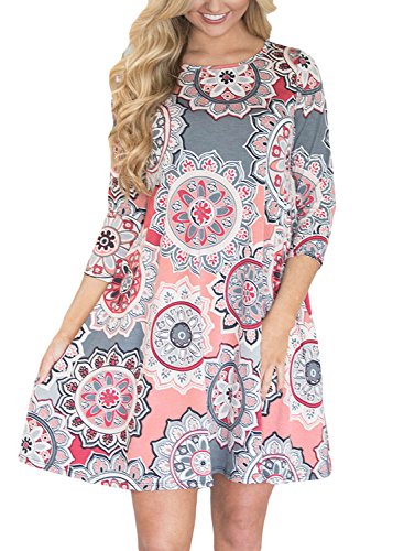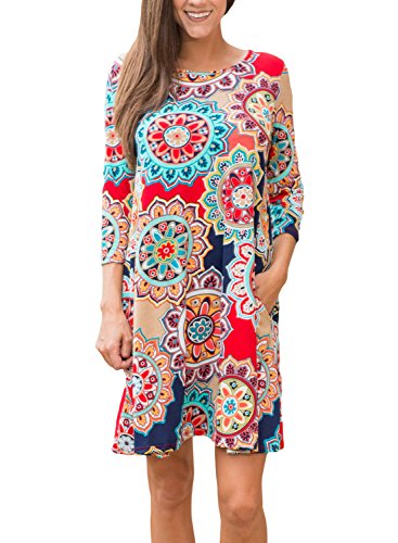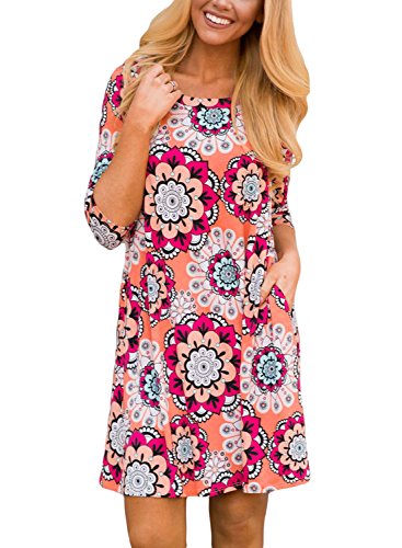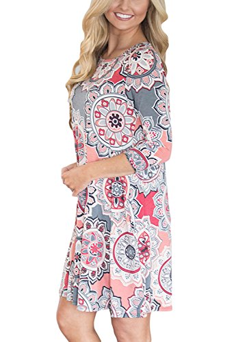 Dearlovers Women 3/4 Sleeve Loose Floral Casual T-Shirt Dress X-Large Size Multicolored-06