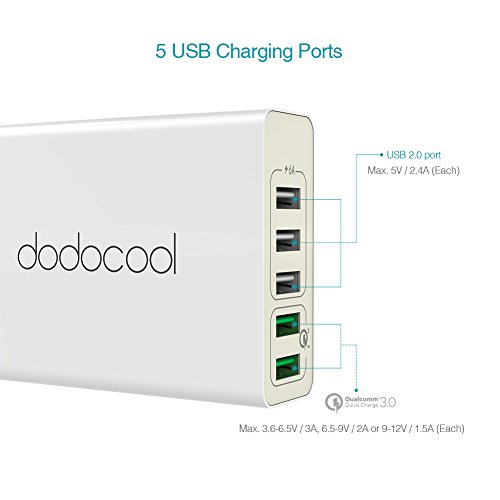 dodocool USB Charger 5 Ports Desktop Charging Station with Dual Quick Charge 3.0 Ports & 3 USB Ports 60W for Samsung Galaxy S7/S6/Edge, LG G5, iPhone, iPad, Nexus 6P & More