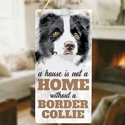 Meijiafei A House Is Not A Home Without A Border Collie - Dog Sign/ Plaque For B&W Border Collie Gifts 10"x5"