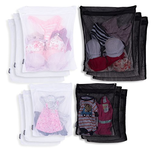 RACK AND HOOK Laundry Washing Bags Travel Sorting White and Black Set of 12
