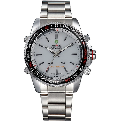 | [해외] 웨이드 고품질 아날로그 디지털 LED 시계 캐주얼 패션 스테인레스 스틸 손목 밴드 방수 스포츠 남성 석영 시간 시계 |