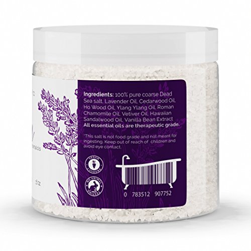 - Infused with therapeutic grade essential oils. This unique blend of Lavender, Cedarwood, Ho Wood, Ylang Ylang, Marjoram, Roman Chamomile and more will creates a magical subtle aromatic atmosphere in your bath allowing you to relax while the salt supports your body.