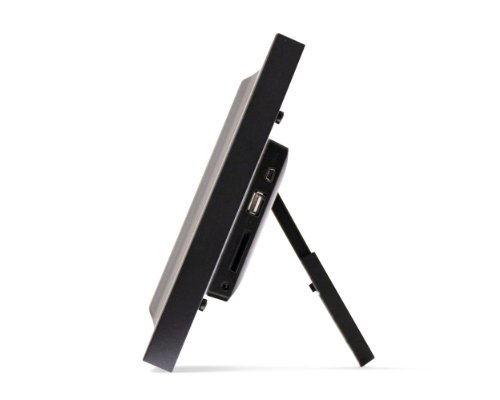 -. Feature : 8-inch digital picture frame with 800x600 resolution, 4:3 aspect ratio LCD screen / 2 GB of internal memory for virtually limitless storage and playback / Multiple display and play modes, including slideshow, clock, alarm and calendar / Compatible with most memory card formats; equipped with a USB cable and power supply / Plays image, video and audio files; features picture rotation and zoom