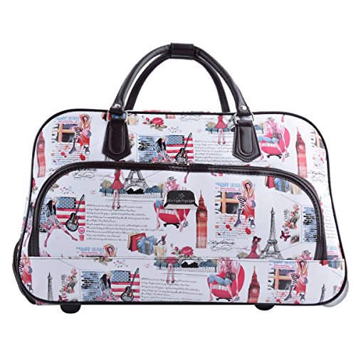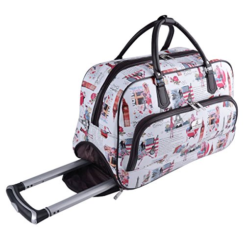 -. Brand : Coofit -. Feature : New Arrival: Fashionable doodles wheeled duffle bag / Good Quality: Made of leather fabric, and great in workmanship / Modest Size: 50*30*25cm(19.6*11.8*9.8in) W*H*D. Exquisite, and yet spacious for your personal belongings / Essential Organizer: It's ideal for the demands of travelling days / Trendy Design: Decent duffle bags with trendy colors to choose from -. ProductGroup : Apparel -. ProductTypeName : LAGE -. Title : Coofit Travel Rolling Bag Unisex Leather Duffle Lage Weekender Bag 20in