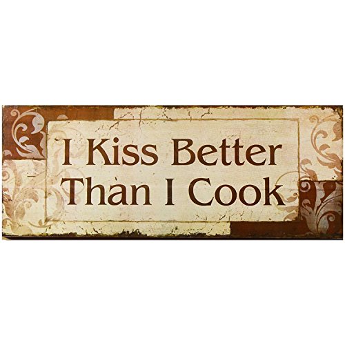 Decorative Wood Wall Hanging Sign I Kiss Better Than I Cook Orange Brown Beige Home Decoration By meijiafei