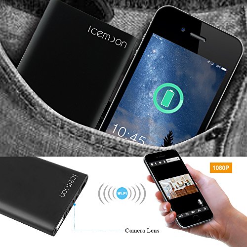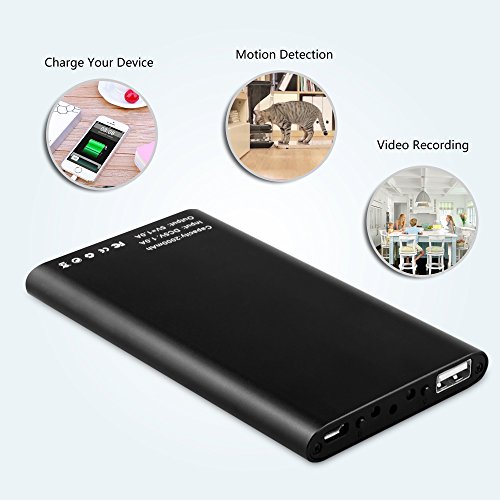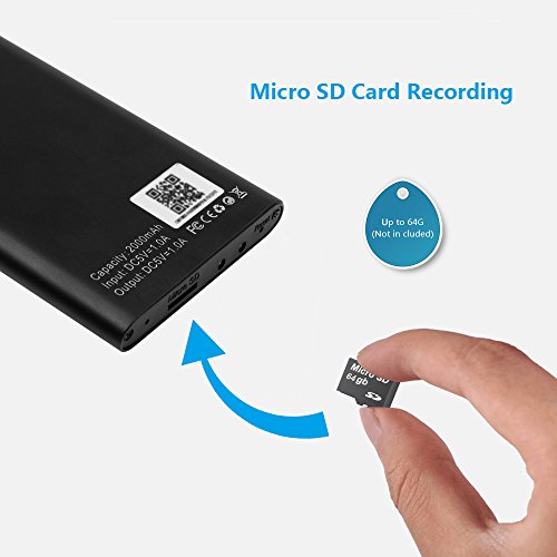 Hidden Camera Power bank: It is a real power bank with a capacity of 2000mAh used for charging your iPhone or Android device. Two tiny LED light on it helps recording in dim light or emergency lighting