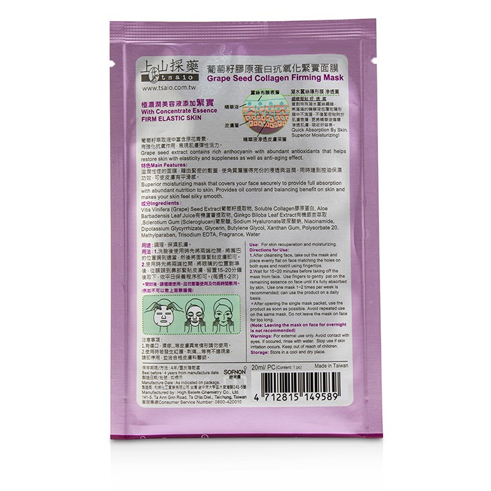 Tsaio Grape Seed Collagen Firming Mask 10x20ml