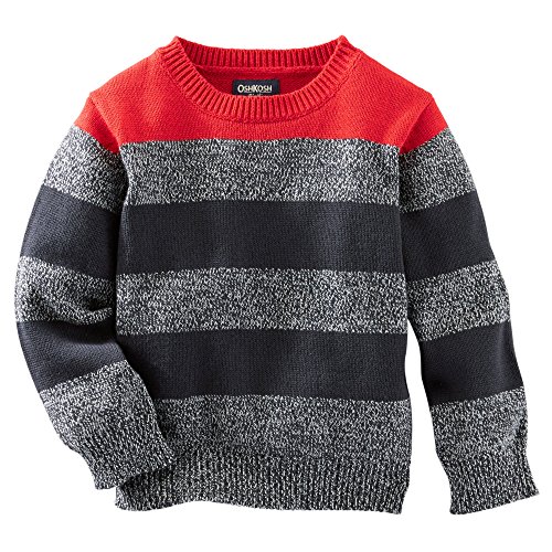 OSHKOSH BOY'S STRIPED SKI LODGE PULLOVER SWEATER; RED/GREY/BLACK (7)