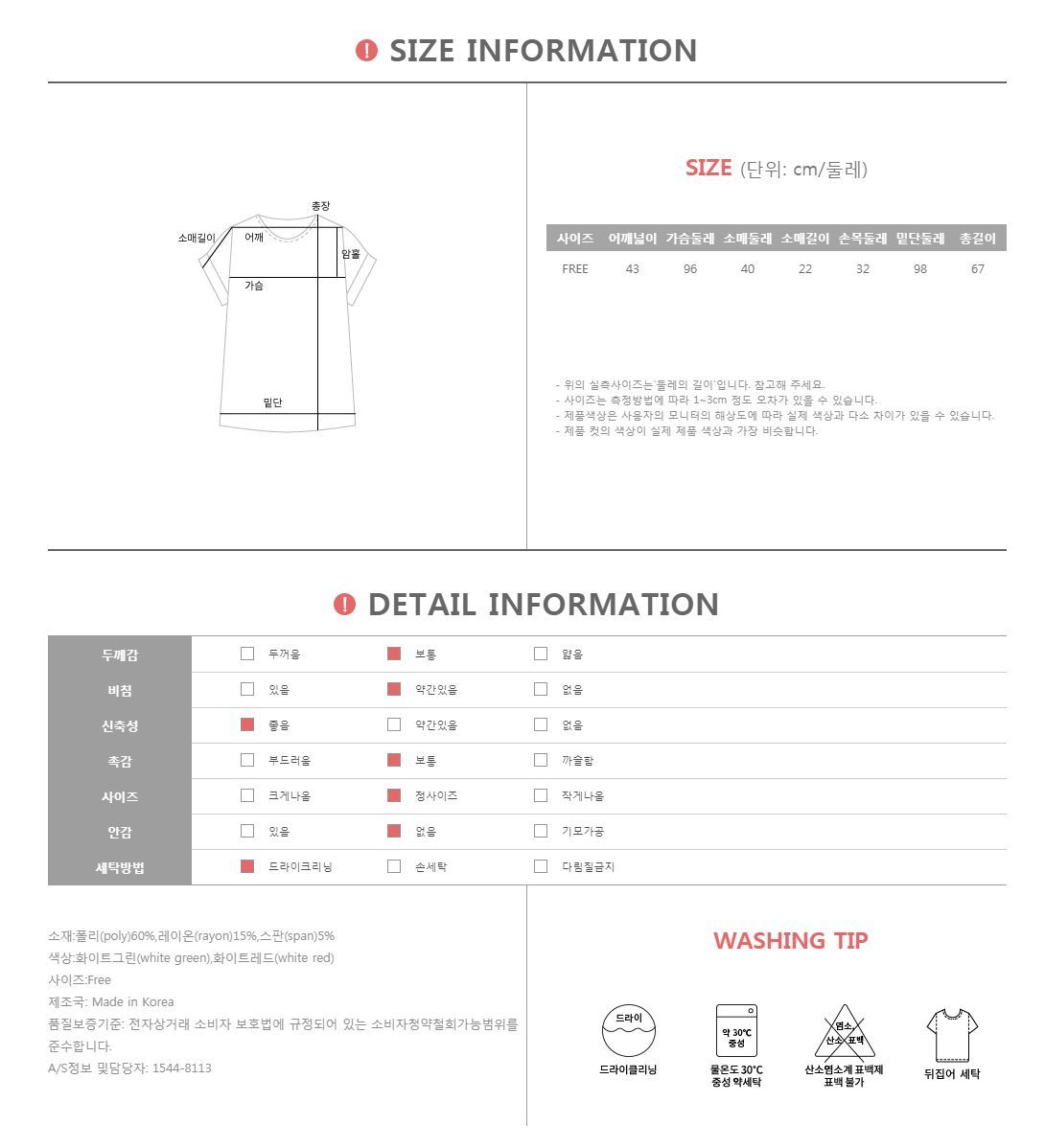 폴리,레이온,스판 혼방의 소재감으로 제작된 티셔츠에요