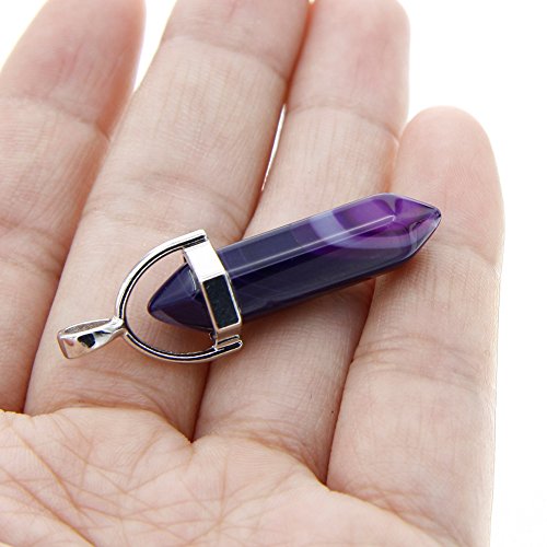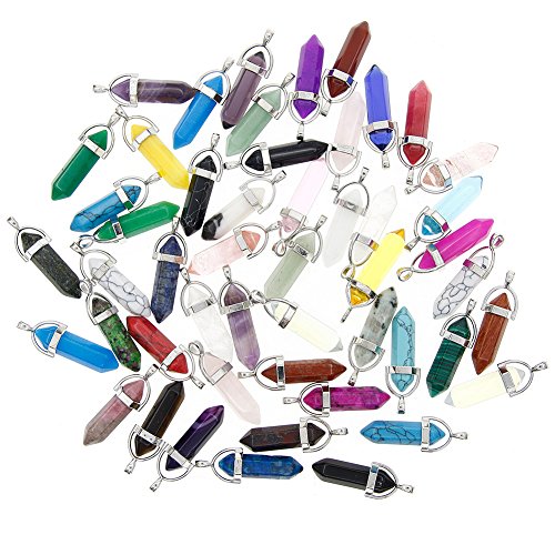 KeyZone 50pcs Bullet Shape Healing Pointed Chakra Beads Quartz Crystal Stone Pendants for DIY Necklace Jewelry Making, Assorted Color