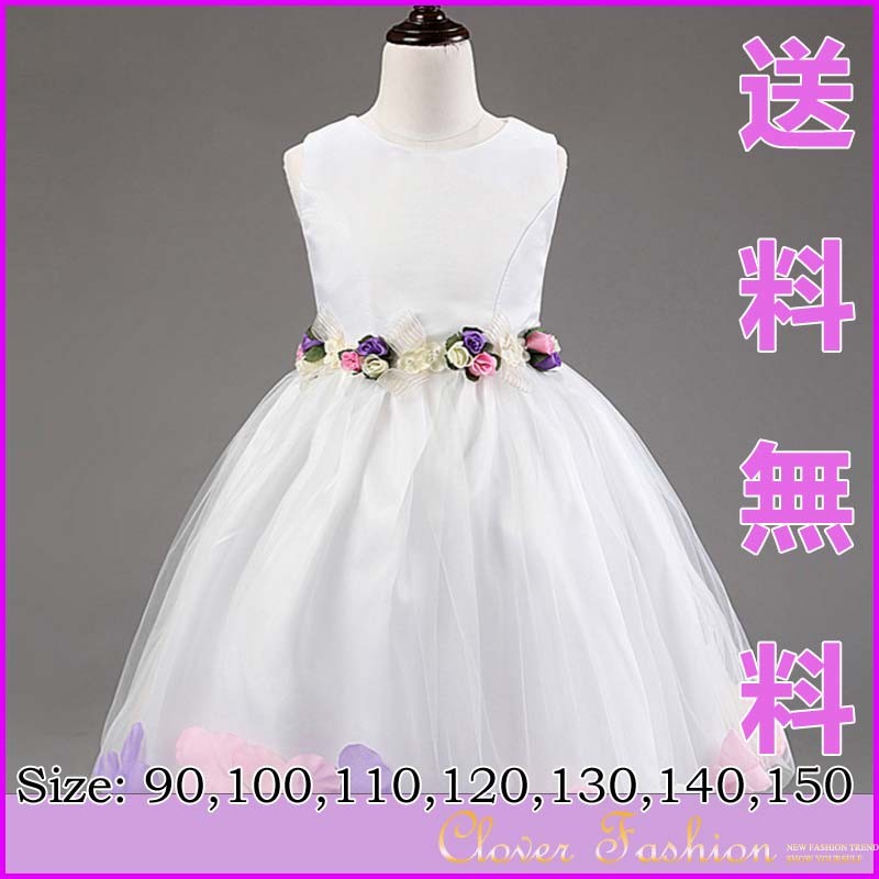 送料無料 2016新作 ドレス 子供 発表会 ドレス 子供 結婚式 ドレス 子供 ドレス キッズ フォーマル キッズ 90 100 110 120 130 140 150 ホワイト ローズ ピンク レッド パープル 結婚式 七五三 お呼ばれ ワンピース 上品 子ども こども 花ベルト 演出服 演奏会 薔薇モチーフ