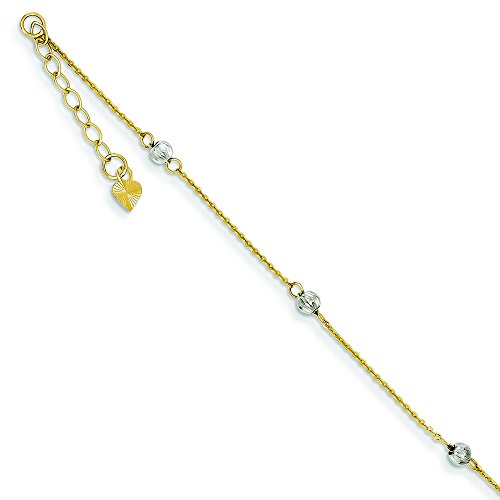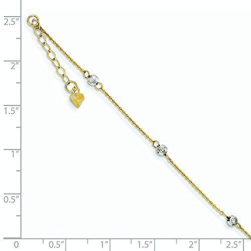 14k Two-Tone Gold Diamond-cut Beads With 1inch Ext Anklet - 9 Inch - 1.2 Grams in 14k Yellow Gold and White Gold - JewelryWeb Style: QTA213051YW - FREE gift-ready jewelry box