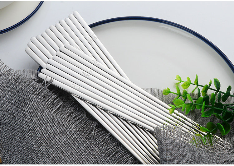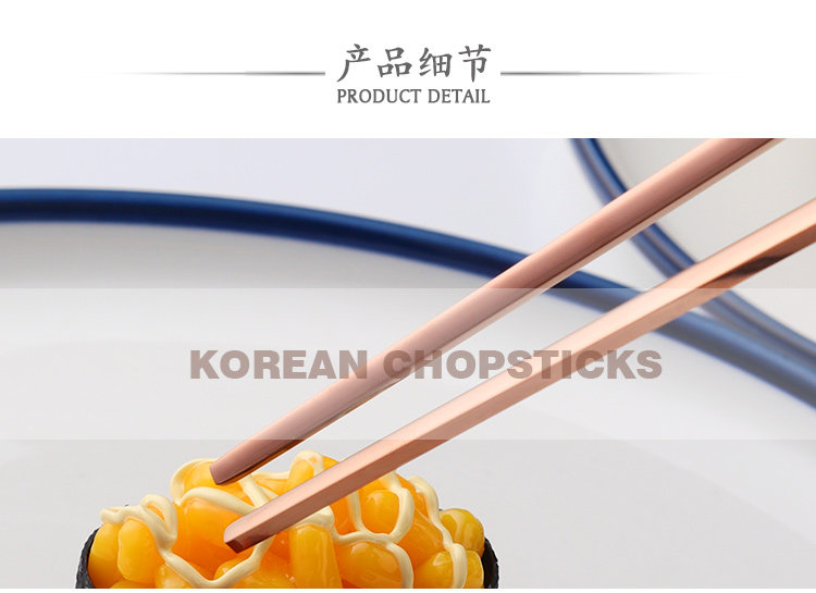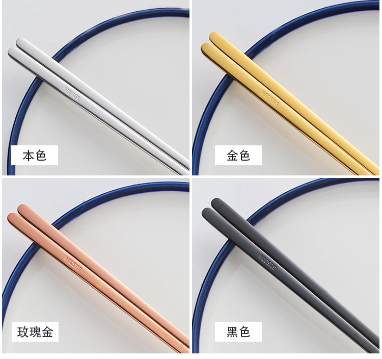 304不锈钢韩国实心扁筷子 高档韩式学生金属筷套装便携式防滑防烫
