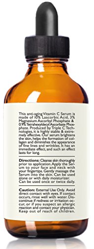 [Product Information]- POWERFUL VITAMIN C FOR SKIN: Our potent Vitamin C Serum contains 100% Pure L Ascorbic, the purest form of Vitamin C. Using Triple C Technology™, Our Vitamin C is proven to stimulate collagen, reduce wrinkles and fine lines, brighten skin, fade age spots and dark circles, and even skin tone.