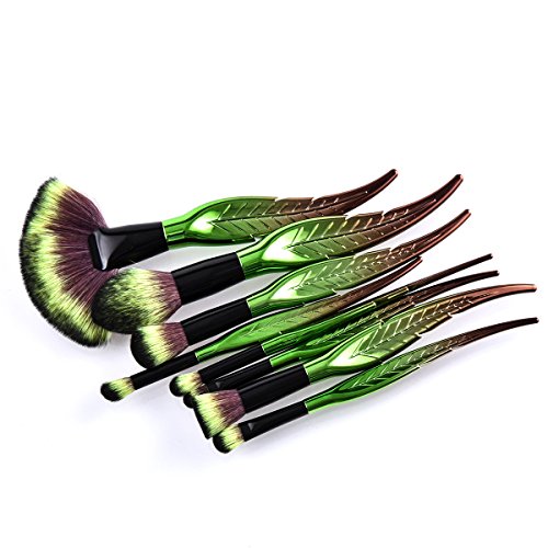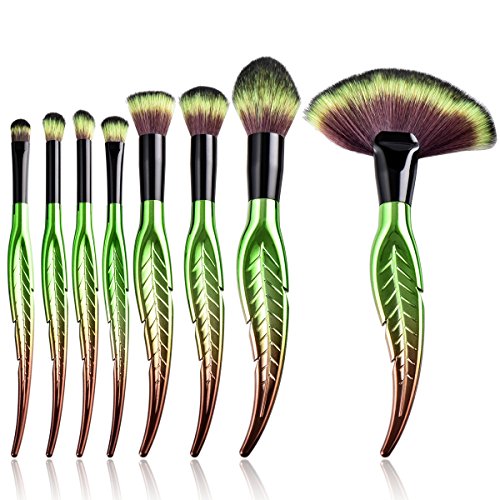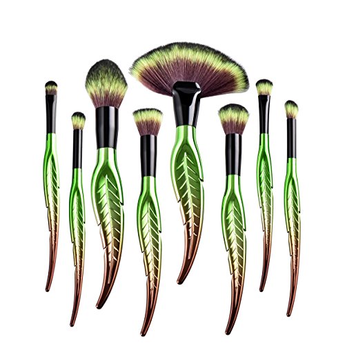 Saking Leaf Makeup Brush 8 PCS Professional Blush Powder Sector Foundation Fan Brushes(Breen)
