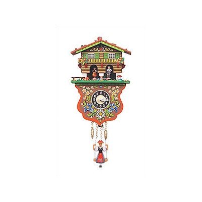 Studio : Alexander Taron Inc. Publisher : Alexander Taron Inc. Binding : Kitchen Product Description Black Forest weather house chalet clock - girl swings side to side - figures react to weather conditions: girl comes out when dry - boy comes out when humid; battery-operated (uses one a battery - not included) - 1 year guarantee - made in Germany. 0
