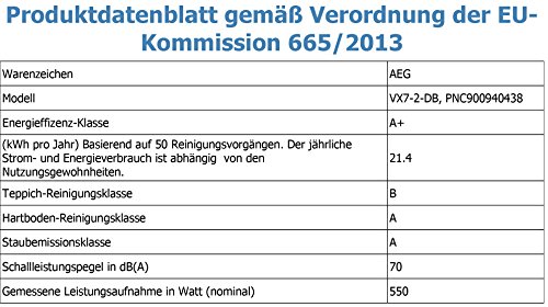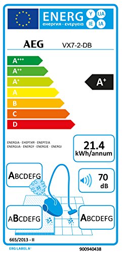 AEG VX7-2-DB Staubsauger mit Beutel EEK A+ (650 Watt, 12 m Aktionsradius, Softrader, 3,5 Liter Staubbeutelvolumen, Hygiene Filter E12) blau
