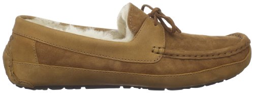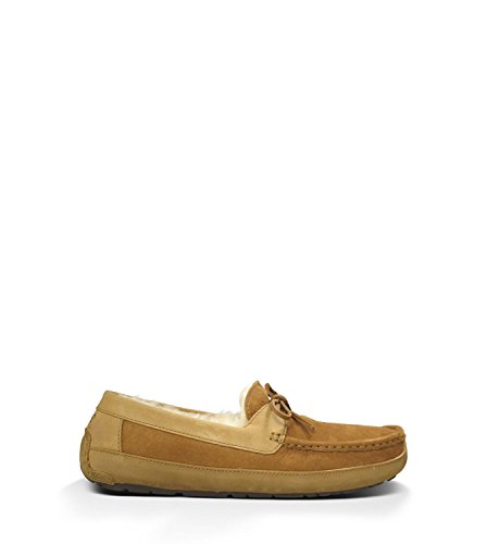 Studio : Deckers Outdoor Corporation Publisher : Deckers Outdoor Corporation Binding : Apparel Product Description The Byron, now available in new, collection-defining hues, is crafted in luxe leather and ultra-soft Twinface?with genuine sheepskin lining. This wear-everywhere slipper features a molded rubber outsole for better grip and flexibility, and is finished with leather lace detailing and moc toe construction for a refined look. Collection Details: Upper: Moc toe construction. Twinface and leather uppers. Leather LaceLined with UGGpureTM Insole: Sheepskin or UGGpureTM sockliner that naturally wicks away moisture, creating dry comfort and breathability Outsole: Molded gum rubber Style Details: Heat embossed logoOther: The sueded side of Twinface sheepskin is susceptible to staining and discoloration if worn in snow or rain. To ensure longevity, please handle with care. This product contains real fur from Sheep or Lamb Fur Origin: Australia, European Union or United States Real Fur has been artificially dyed and treated By UGG® Australia; RN# 88276 This product is made in US, China, or Vietnam, varies by product Use?UGG® Australia?Care Kit for cleaning. 0
