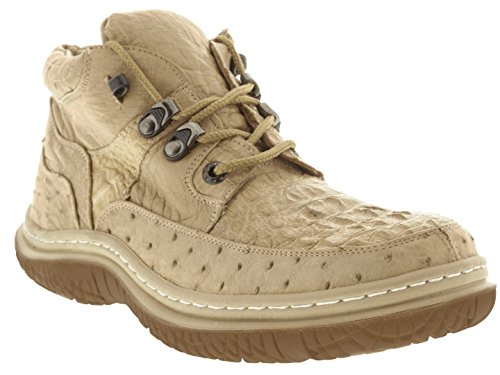 (El Presidente)/Men's/Boots/DIRECT FROM USA/El Presidente Men's Sand Tan Genuine Exotic Crocodile Ostrich Skin Sneaker