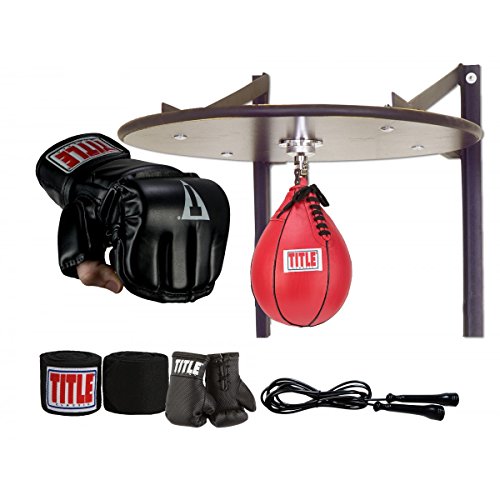 -. Binding : Misc. -. Brand : Title Boxing -. Feature : 1 TITLE Deluxe Speed Bag Platform / 1 TITLE Pro Style Steel Speed Bag Swivel / 1 TITLE Classic 6" x 9" Leather Speed Bag / 1 Pair TITLE Classic Wristwrap Heavy Bag Gloves / 1 Pair TITLE Flash Miniature Boxing Gloves (Color may vary) -. IsMemorabilia : 0 -. Label : TITLE Boxing -. Manufacturer : TITLE Boxing -. ProductGroup : Sports -. ProductTypeName : SPORTING_GOODS -. Publisher : TITLE Boxing -. Studio : TITLE Boxing -. Title : TITLE Deluxe Speed Bag Set