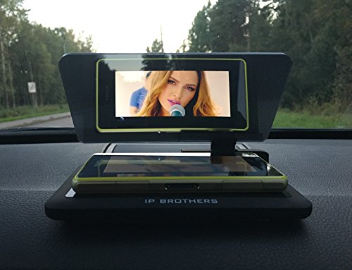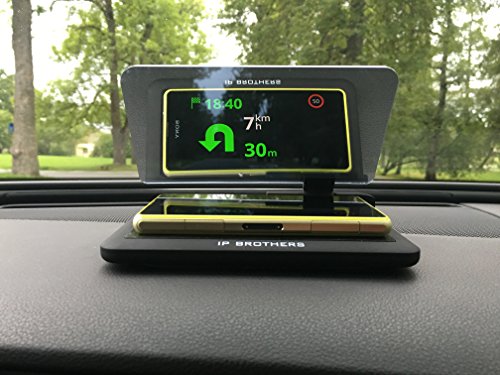 ABOUT THE IP BROTHERS HUD: Our product turns any smartphone into a head-up display (hud). It can be used with any car you currently have and it will reflect any hud-based smartphone app. It positions the desired information right in the driver's line of sight and is the most affordable HUD product on the market. Screen Sizes 5,9 x 3,15 inches.