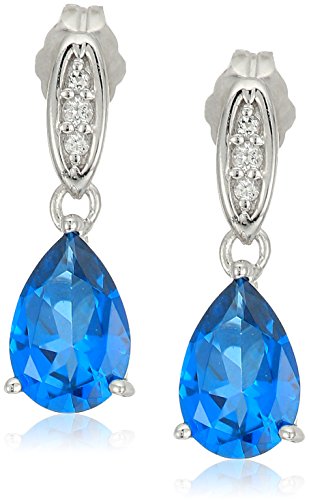 Drop stud earrings adorned with Genuine Kashmir Blue Topaz and White Topaz accents cut exclusively by Swarovski