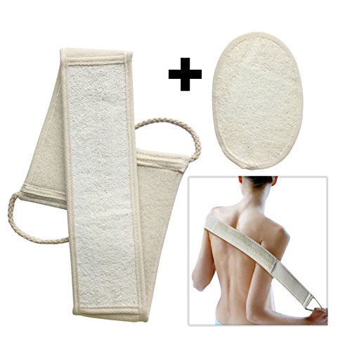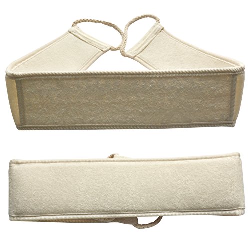 - Modern design with exfoliating back scrubber, intended for cleaning the back, neck, shoulders, feet or any other hard to reach areas. Long shower straps make it so easy to reach any part of the body.